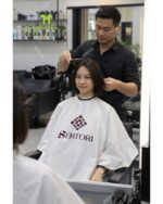 Áo choàng tóc giúp bảo vệ quần áo khách hàng, giữ vệ sinh khu vực làm việc, đồng thời hỗ trợ nhận diện thương hiệu khi may áo choàng cắt tóc in logo cho salon.