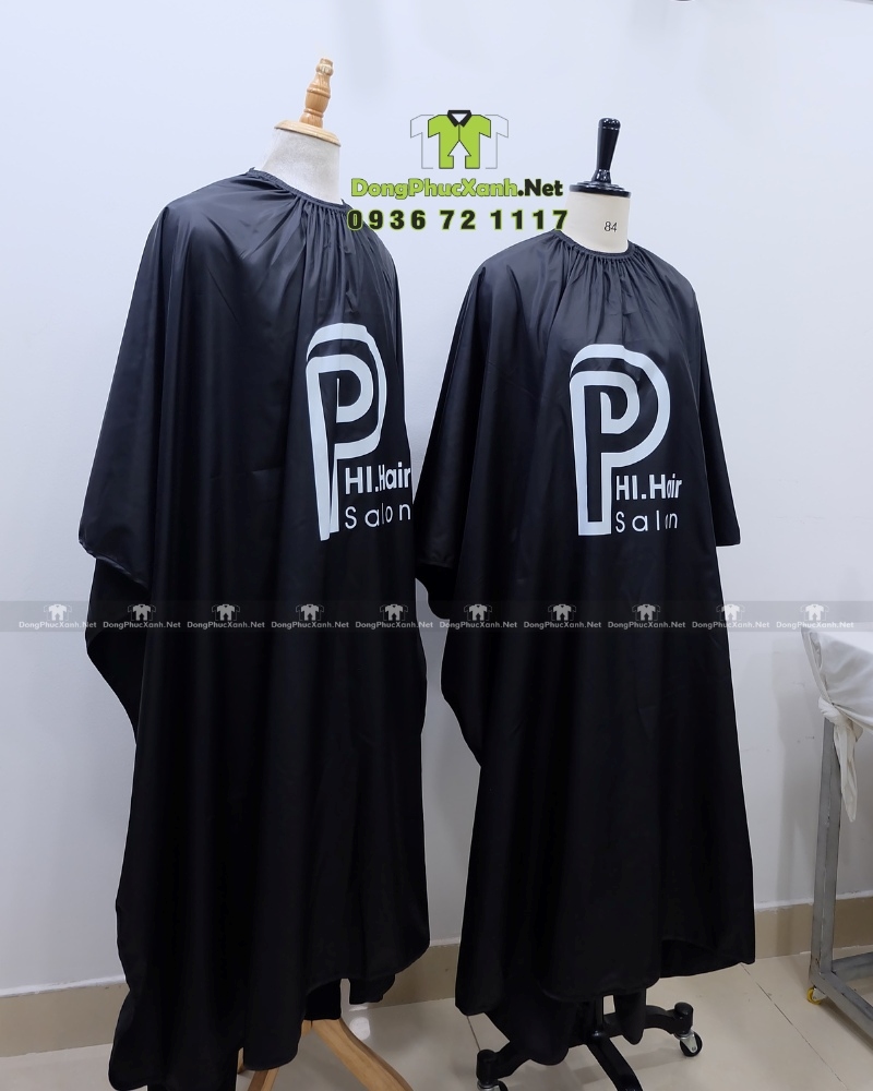 Mẫu áo choàng tóc đồng phục Phi Hair Salon mang lại sự chuyên nghiệp, đồng bộ và góp phần khẳng định thương hiệu salon.