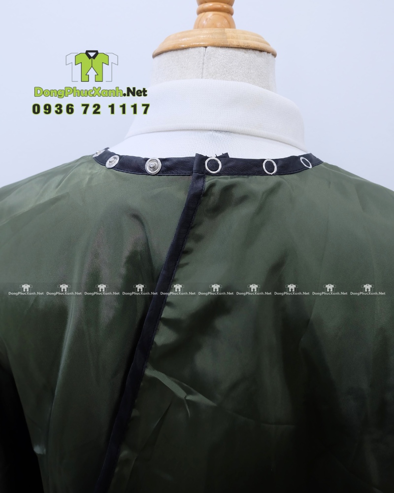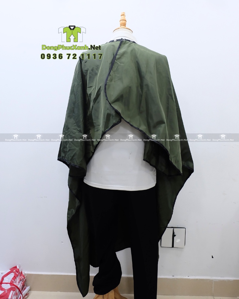 Ngoài màu xanh rêu, áo choàng tóc in logo có thể được tùy chỉnh màu sắc theo nhận diện thương hiệu riêng khi đặt may số lượng lớn.