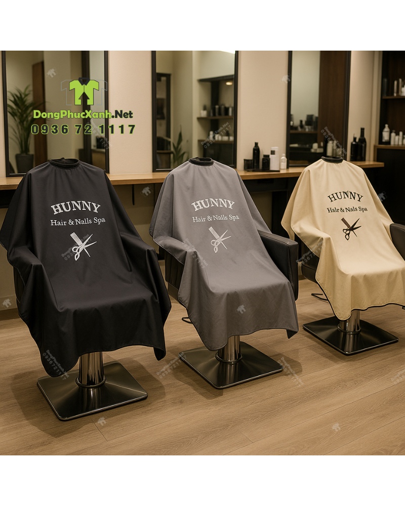 Áo choàng giúp bảo vệ khách hàng khỏi tóc vụn, hóa chất và bụi bẩn trong quá trình làm tóc – làm nail. Đây là lựa chọn lý tưởng cho salon cần áo choàng tóc đồng phục, vừa thẩm mỹ vừa hiệu quả trong vận hành.