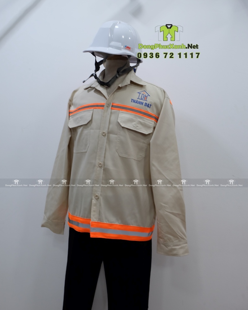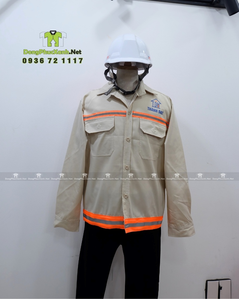 Mẫu áo bảo hộ xây dựng in logo Thành Đạt rõ nét, vừa thể hiện thương hiệu vừa tạo sự đồng bộ cho đội ngũ nhân viên.