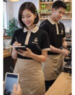Áo đồng phục quán cà phê giúp tạo sự đồng bộ cho nhân viên, nâng cao hình ảnh thương hiệu, mang lại cảm giác chuyên nghiệp và thân thiện trong quá trình phục vụ khách hàng.