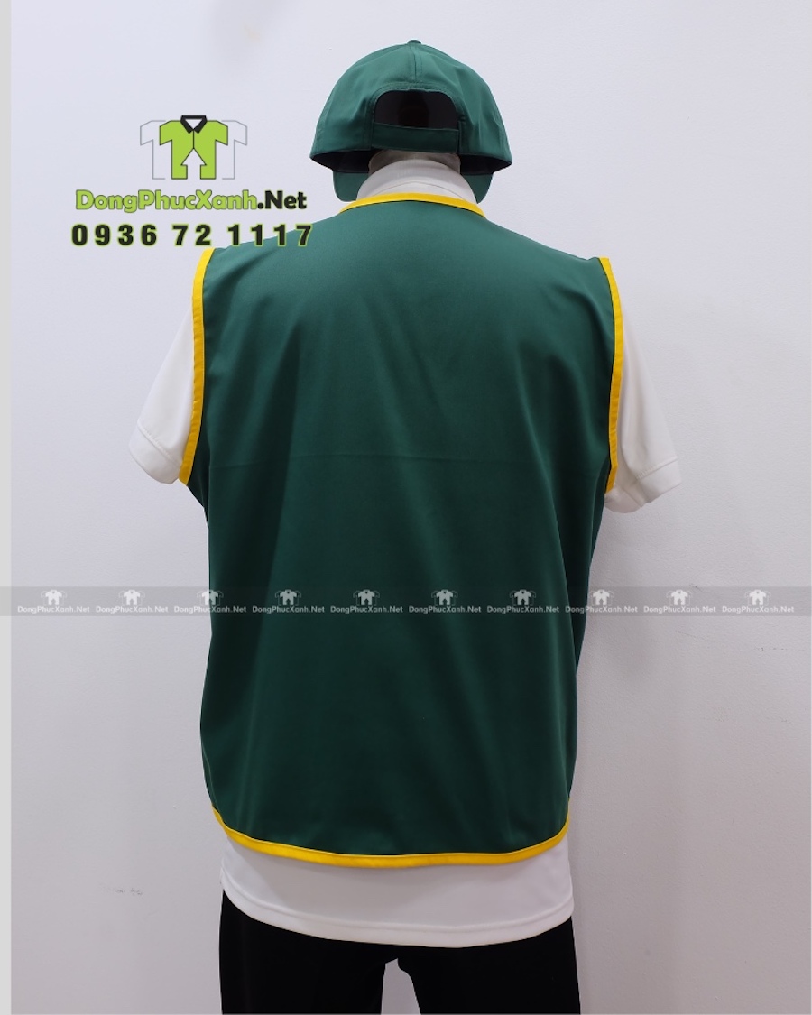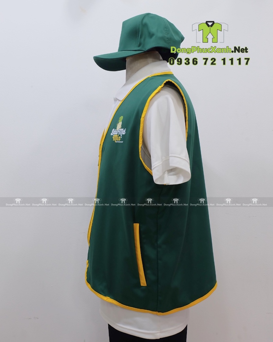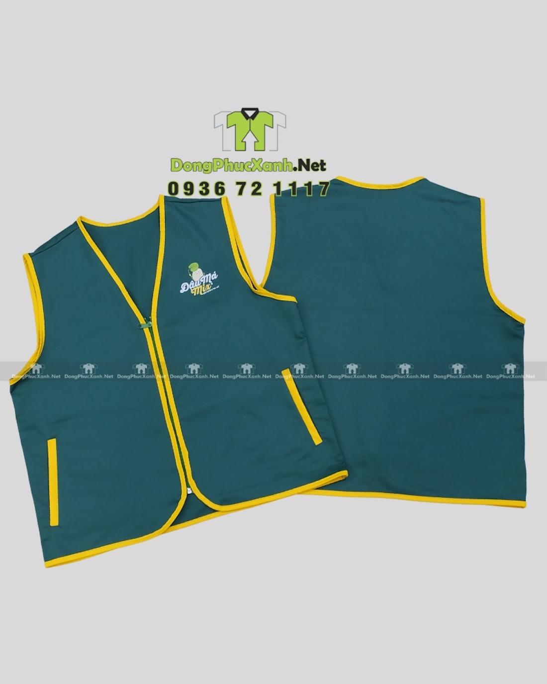 Đồng phục gile gió Đậu Má Mix được thiết kế gọn nhẹ, tiện lợi, phù hợp cho nhân viên làm việc ngoài trời hoặc di chuyển nhiều. Kiểu dáng đơn giản nhưng nổi bật nhờ phối viền vàng tươi, giúp người mặc dễ nhận diện và tạo sự chuyên nghiệp.