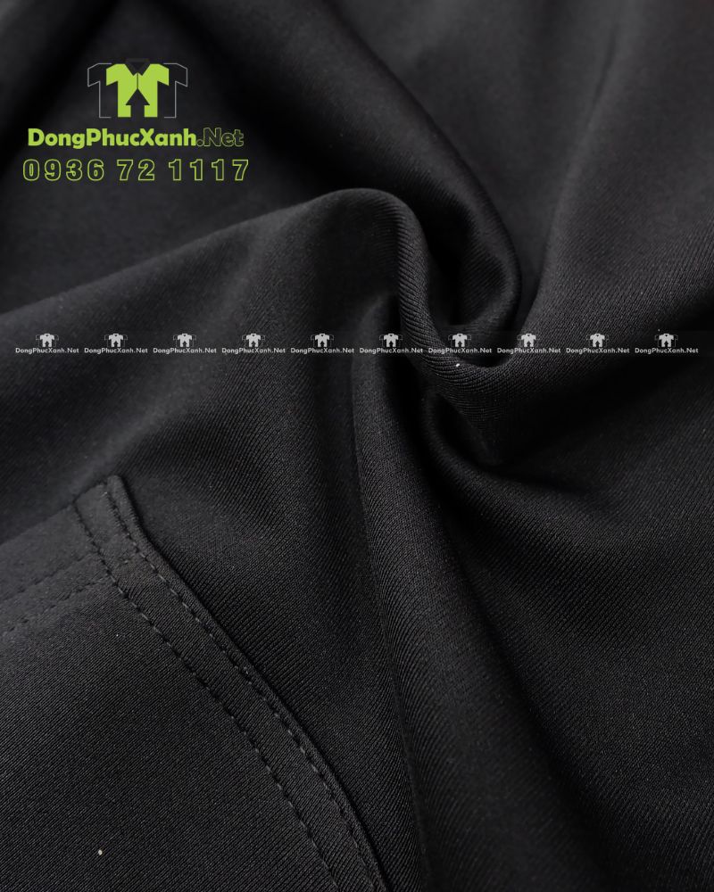 Màu đen giúp đồng phục nhìn sạch, dễ phối và phù hợp nhiều môi trường từ làm việc đến sự kiện. Màu đỏ ở mũ và bo tạo điểm nhấn mạnh, giúp đội nhóm nổi bật khi đứng theo đội hình và tạo sự đồng bộ khi lên hình. Nếu khách hàng có bộ nhận diện riêng, xưởng có thể tư vấn điều chỉnh màu mũ, màu bo và màu thân áo để phù hợp hình ảnh thương hiệu, đồng thời thiết kế mẫu in theo mong muốn.