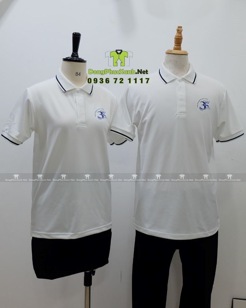 Thiết kế áo chủ đạo là màu trắng tinh giản, phối viền đen trên cổ và tay áo tạo điểm nhấn thanh lịch. Logo in rõ nét, mang ý nghĩa gắn kết tập thể.