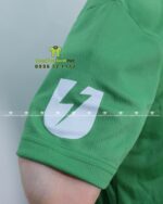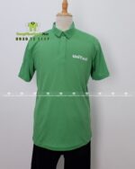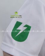 Áo thun đồng phục công ty được thiết kế với hai gam màu chủ đạo là xanh lá nổi bật và trắng thanh lịch. Màu sắc tươi sáng kết hợp cùng logo in sắc nét giúp tăng khả năng nhận diện thương hiệu.