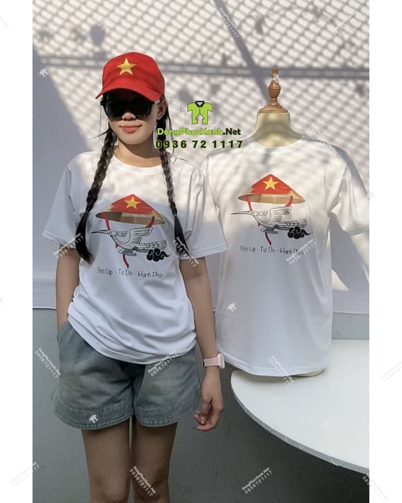 DongPhucXanh.Net là đơn vị uy tín chuyên nhận may và in ấn các dòng áo thun đồng phục, áo thun sự kiện mang đậm tinh thần dân tộc. Với mẫu áo “Độc Lập – Tự Do – Hạnh Phúc” phối họa tiết chim hạc, chúng tôi hướng đến dòng sản phẩm cao cấp, phù hợp cho gia đình, hội nhóm và các chương trình văn hóa, du lịch trên khắp cả nước.
