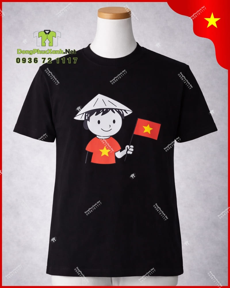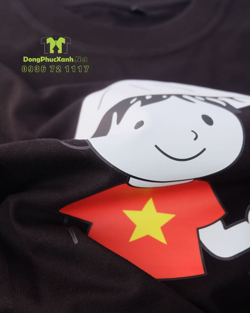 Xưởng áp dụng công nghệ in kỹ thuật số tiên tiến nhất, giúp mực in thấm sâu vào từng sợi vải. Hình cô bé nón lá và lá cờ Tổ quốc có độ sắc nét cực cao, màu sắc trung thực và đặc biệt là độ bền màu ấn tượng, không xảy ra tình trạng nứt vỡ hay bong tróc ngay cả khi giặt máy thường xuyên.