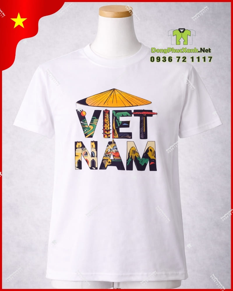 DongPhucXanh.Net là xưởng chuyên thiết kế và sản xuất các dòng áo thun đồng phục, áo thun sự kiện và quà tặng du lịch mang đậm bản sắc văn hóa Việt. Với mẫu áo thun “Tự Hào Việt Nam” phối hình tượng Nón Lá, chúng tôi mang đến một giải pháp trang phục vừa thời trang, vừa ý nghĩa, giúp tôn vinh tinh thần dân tộc trong mọi hoạt động tập thể.