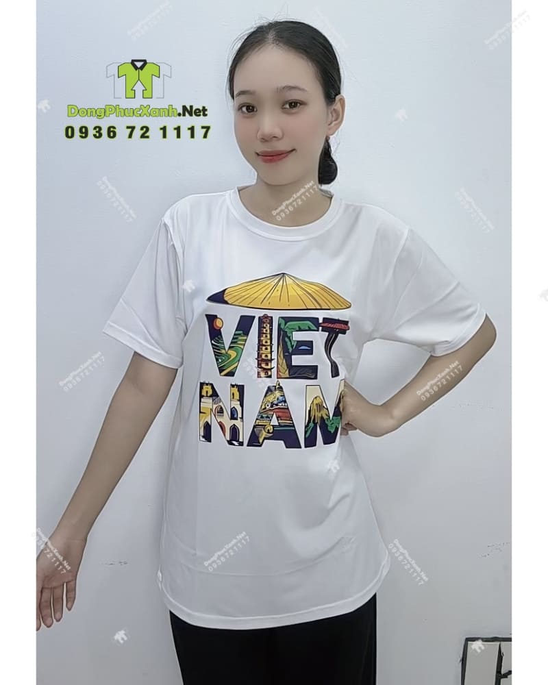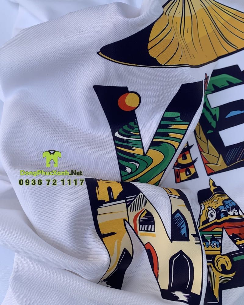 Bố cục hình in được đặt cân đối ở phần ngực áo, tạo sức hút ngay từ cái nhìn đầu tiên. Phía sau áo (tùy chọn) có thể in thêm logo công ty hoặc thông điệp riêng để tăng tính nhận diện thương hiệu cho đoàn khách du lịch hoặc đội ngũ nhân viên.