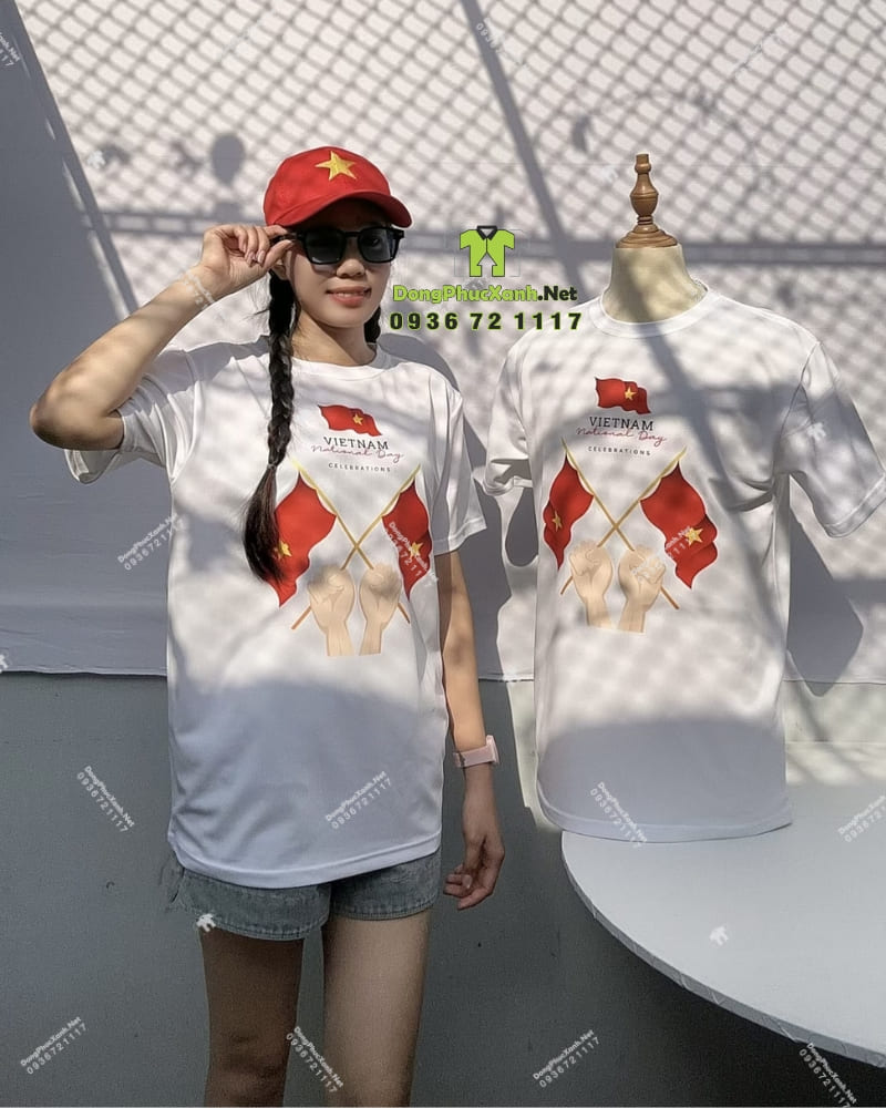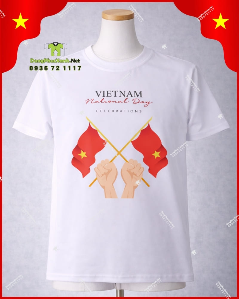 DongPhucXanh.Net là đơn vị chuyên nghiệp trong lĩnh vực may đo và in ấn đồng phục sự kiện, đặc biệt là các mẫu áo thun tôn vinh vẻ đẹp và tinh thần dân tộc. Mẫu áo “Vietnam National Day” với thiết kế họa tiết cầm cờ mạnh mẽ là sản phẩm chủ đạo dành cho các dịp lễ Quốc khánh, các sự kiện ngoại giao văn hóa hoặc làm đồng phục đội nhóm thể hiện tinh thần đoàn kết.