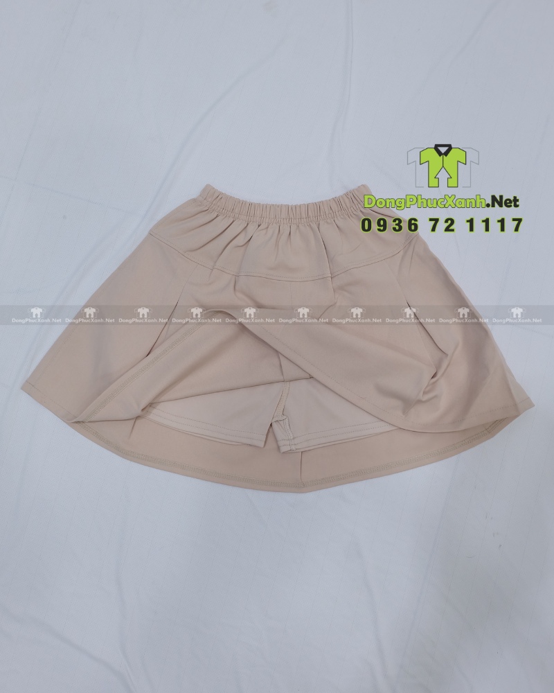 Phần quần và chân váy màu kem được may từ vải kaki thun mềm mịn, co giãn nhẹ, giúp bé dễ vận động và luôn giữ được phom dáng gọn gàng.
