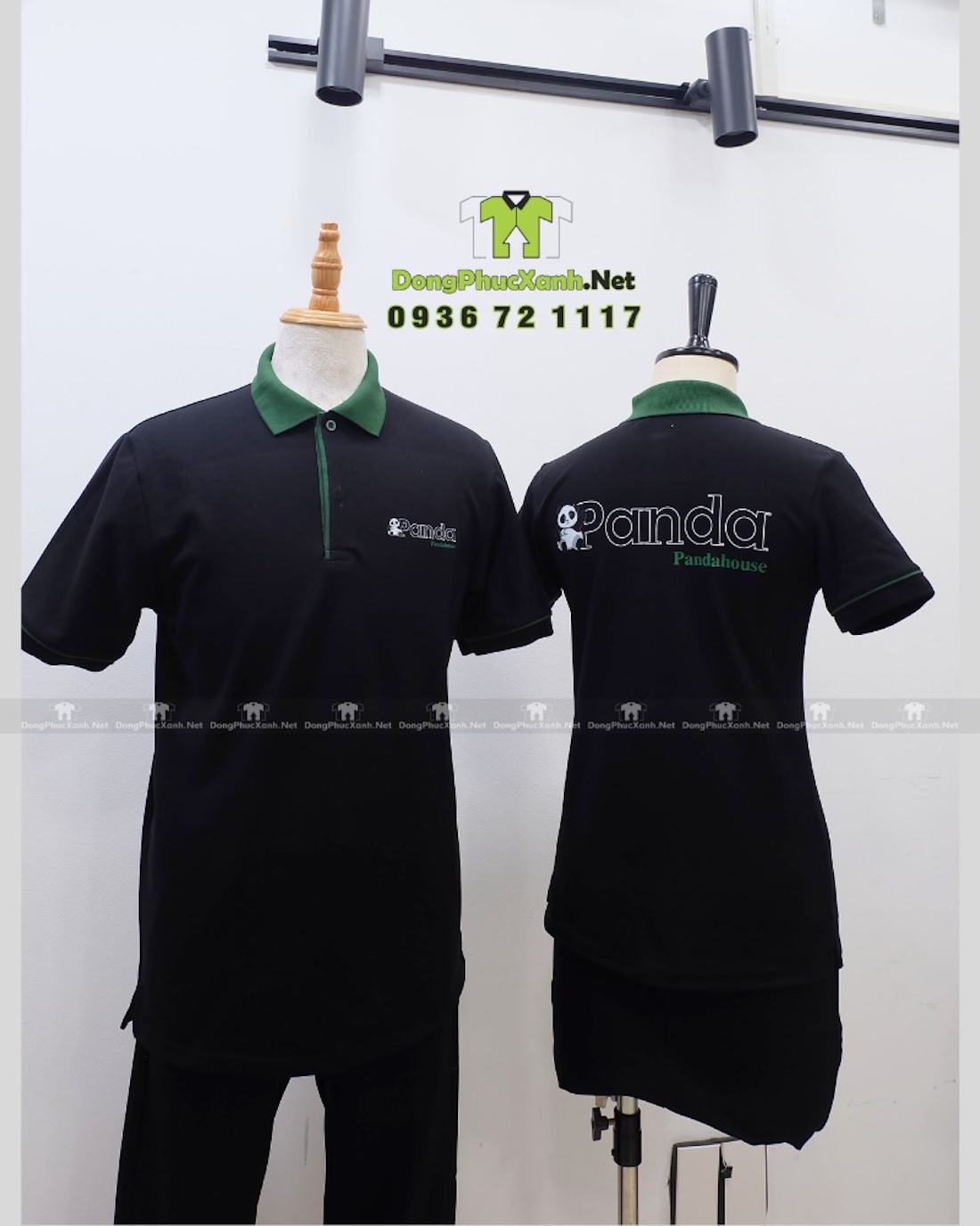 Logo Panda House được in sắc nét cả trước và sau, giúp nhận diện thương hiệu rõ ràng trong mọi khung hình của quán.