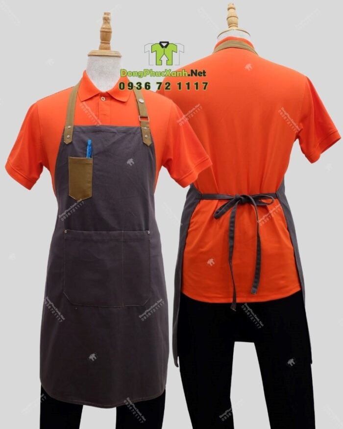 Bạn cũng có thể phối màu riêng giữa áo – tạp dề để tạo điểm nhấn nổi bật hoặc theo nhận diện thương hiệu.