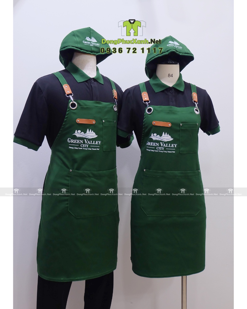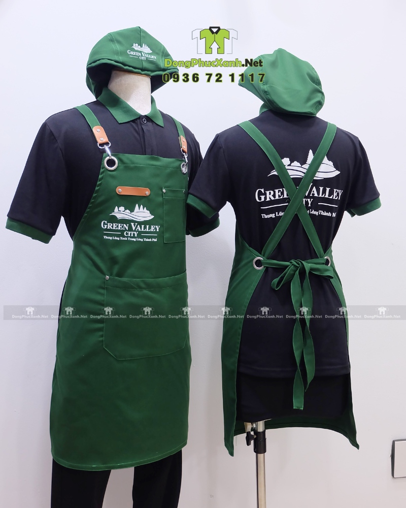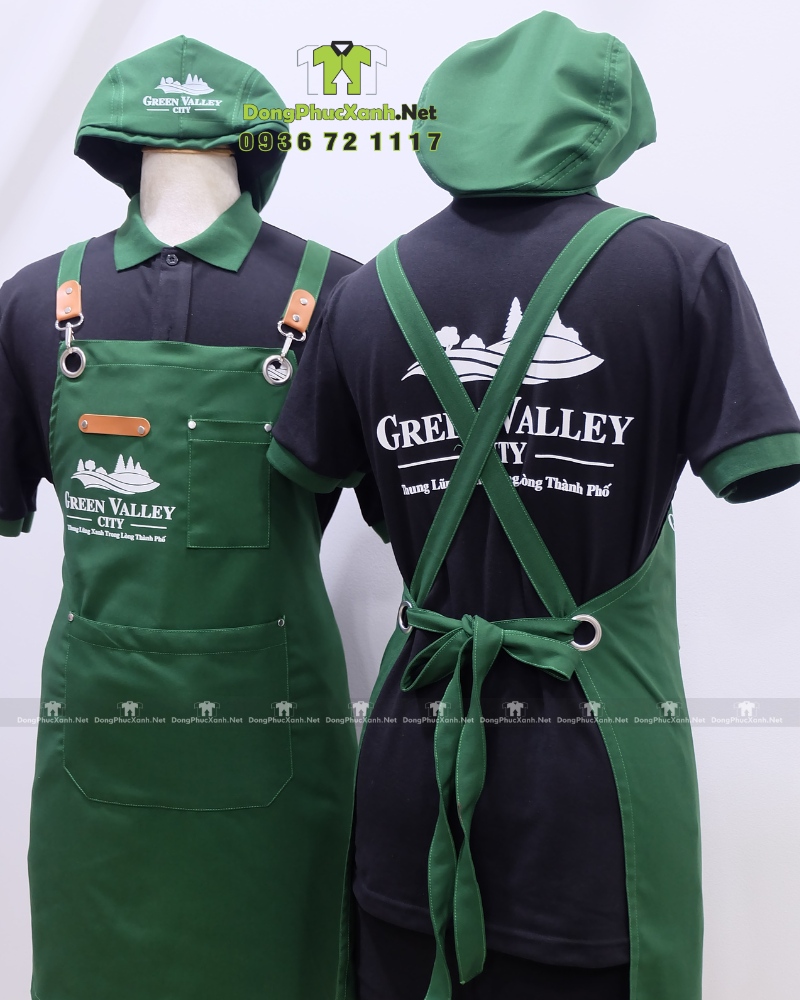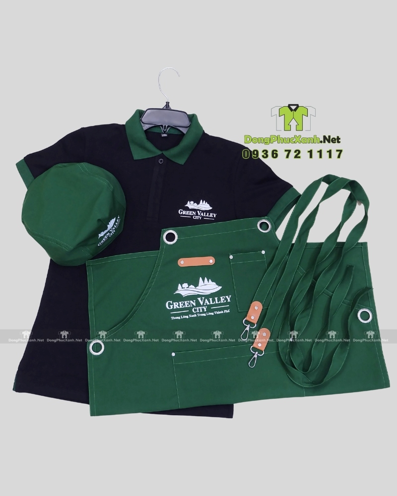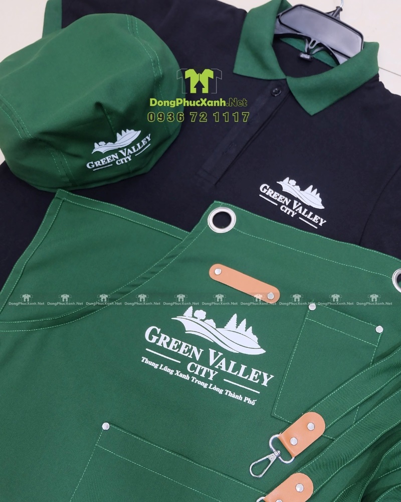 Đây là mẫu đồng phục quán cafe đẹp, in logo Green Valley City sắc nét, góp phần nâng cao hình ảnh và tăng độ nhận diện trong mắt khách hàng.