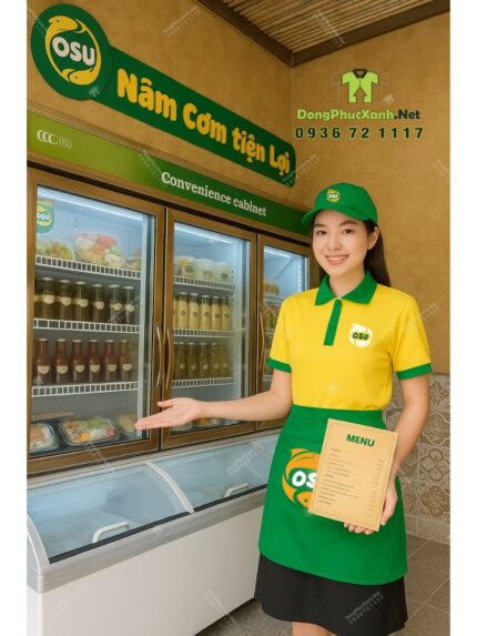 Đồng phục quán cafe không chỉ giúp nhân viên trở nên gọn gàng, chuyên nghiệp mà còn tạo dấu ấn riêng cho thương hiệu. Mẫu thiết kế gồm áo thun cổ trụ, tạp dề và nón, mang đến sự đồng bộ hoàn hảo.