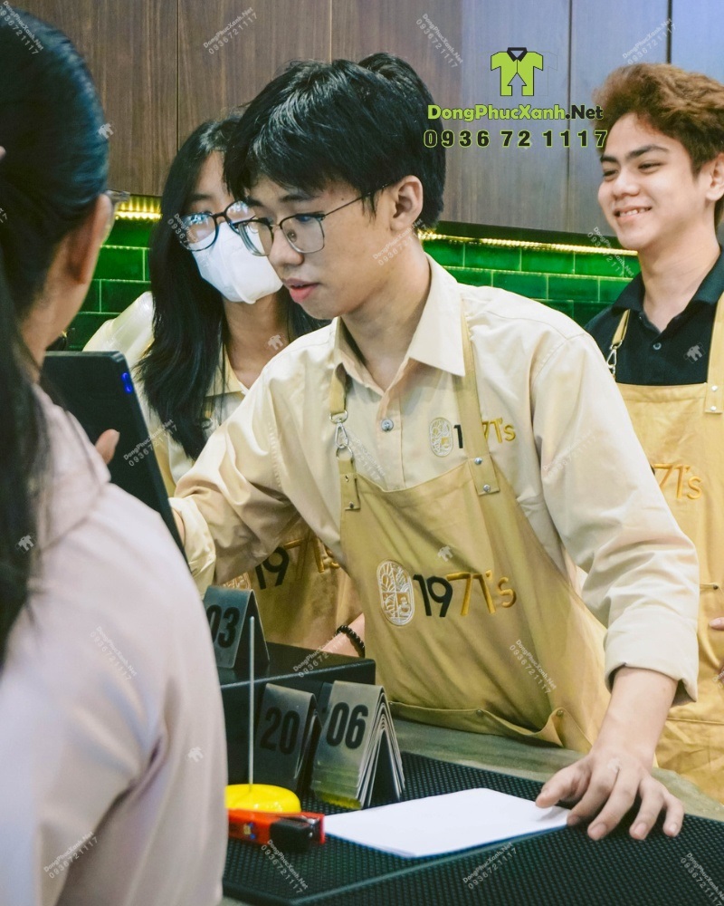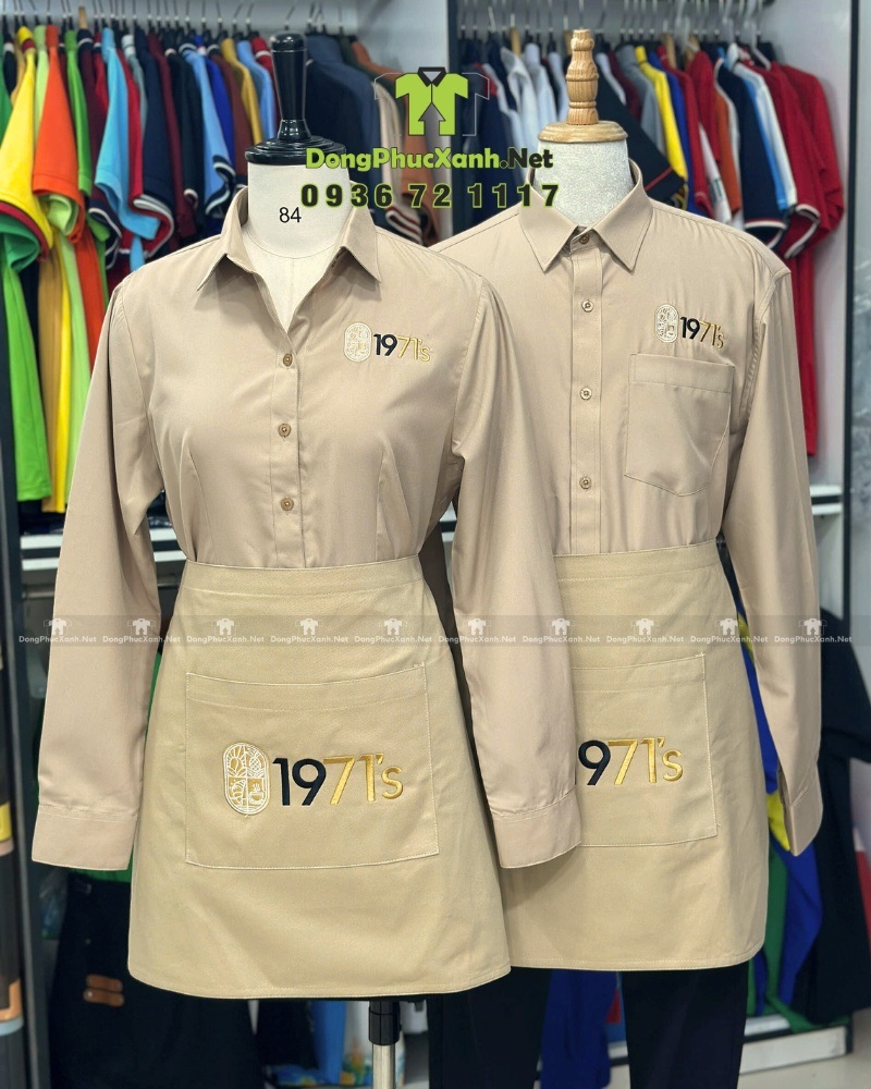 Đồng phục quán cafe 1971’s giúp nhân viên luôn lịch sự, chuyên nghiệp và đồng bộ. Đây là lựa chọn lý tưởng để nâng cao hình ảnh thương hiệu trong mắt khách hàng.