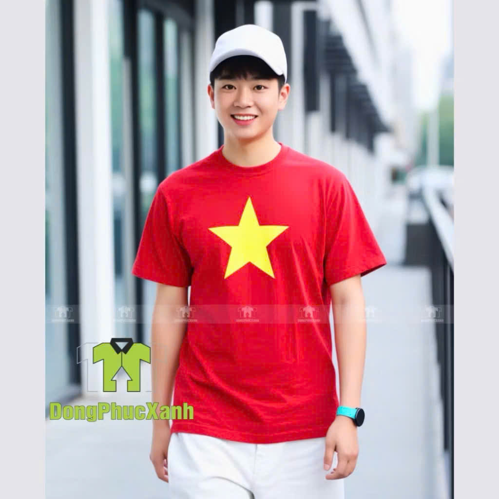 Mẫu áo thun cờ đỏ sao vàng truyền thống, phù hợp cho team building, sự kiện, hoạt động du lịch và ngày lễ lớn