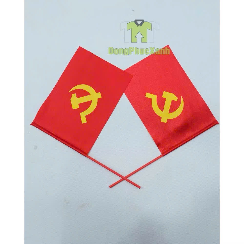 Cờ cầm tay in 2 mặt cờ đảng màu sắc rõ nét, cán nhựa bền, phù hợp cho sự kiện, cổ động thể thao và ngày lễ lớn.