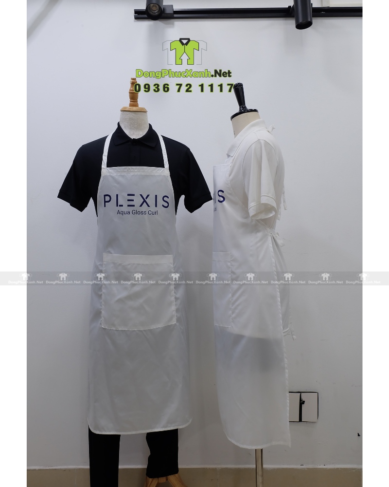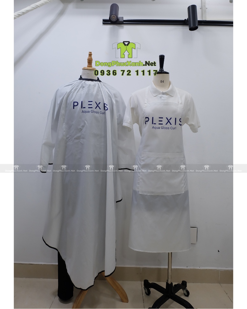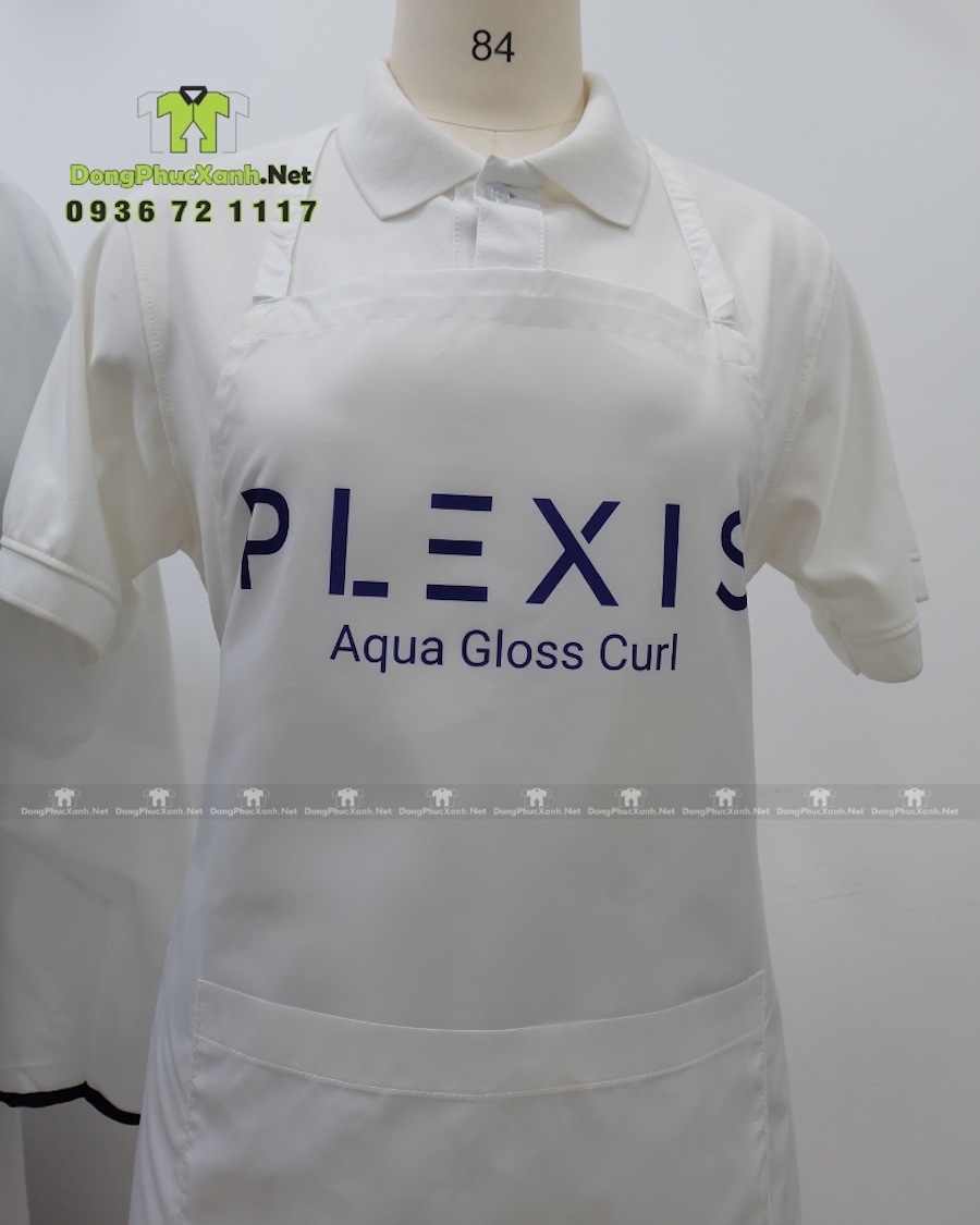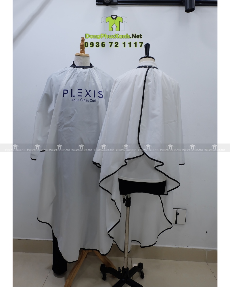 Tạp dề chống thấm nước và áo choàng tóc in logo PLEXIS là sản phẩm thiết kế dành riêng cho salon, spa, và tiệm tóc chuyên nghiệp.