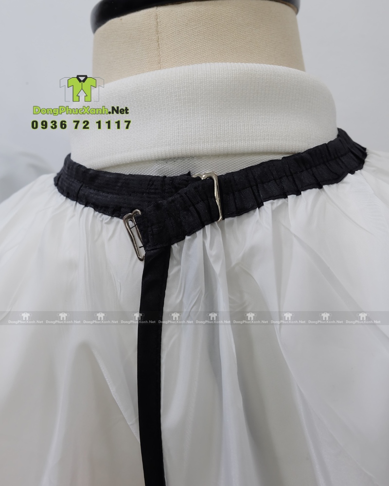Tạp dề chống thấm nước và áo choàng tóc in logo giúp bảo vệ quần áo khỏi hóa chất, nước hoặc thuốc nhuộm, đồng thời tạo hình ảnh chuyên nghiệp và thống nhất cho thương hiệu salon.