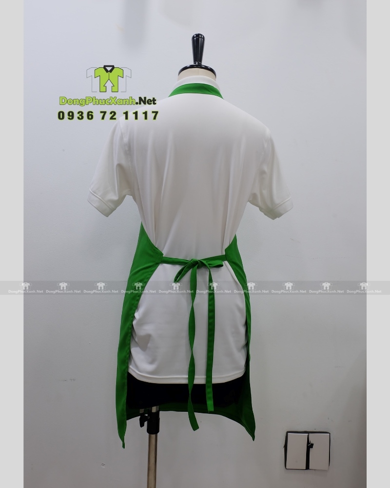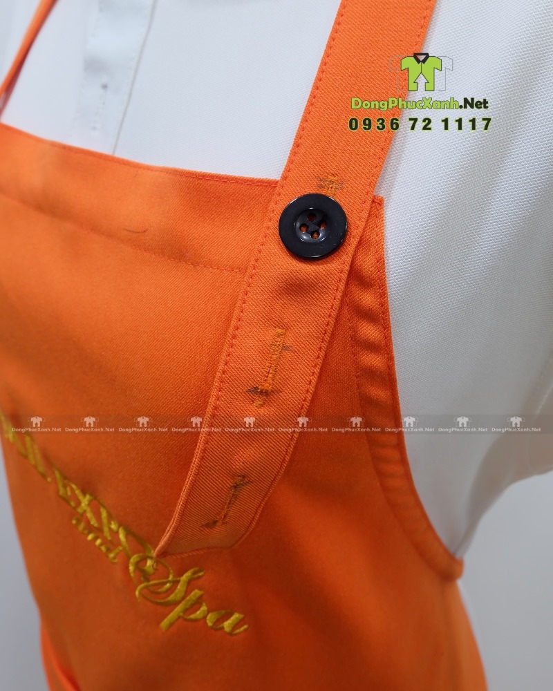 Tạp dề có kích thước freesize, dây đeo cổ dễ chỉnh, dây buộc sau ôm vừa cơ thể. Form thiết kế phù hợp cho đa dạng vóc dáng nhân viên trong salon hoặc spa.
