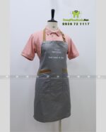 Tạp dề nail màu ghi xám vải Miro 2 lớp in logo Top Service