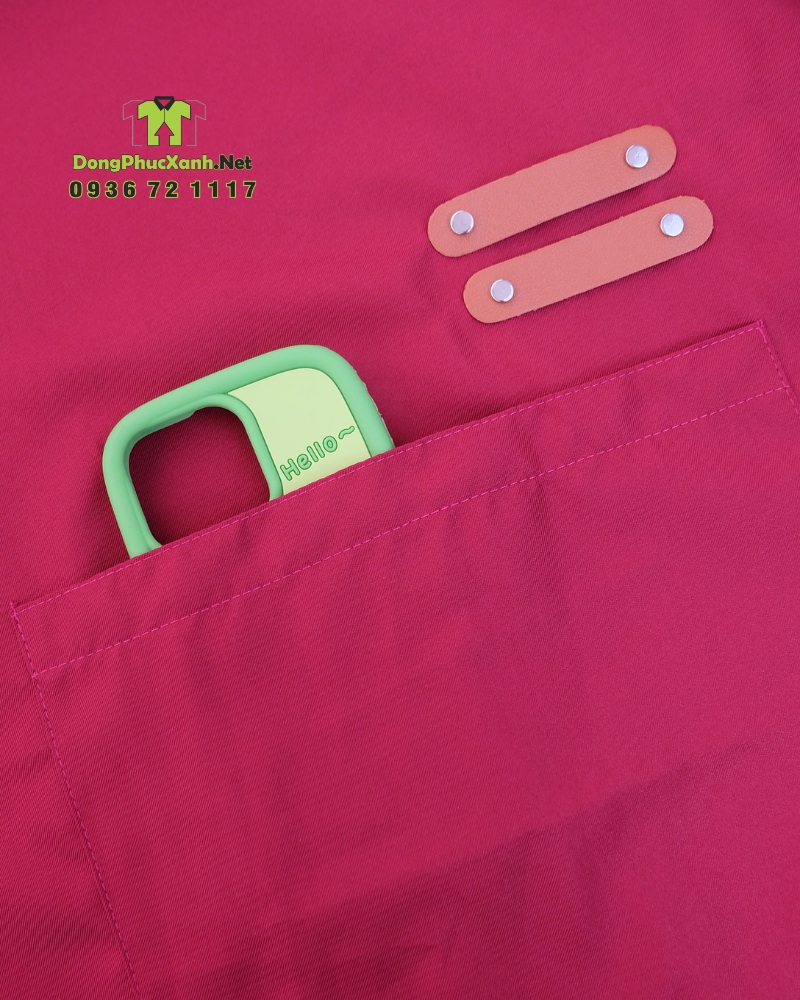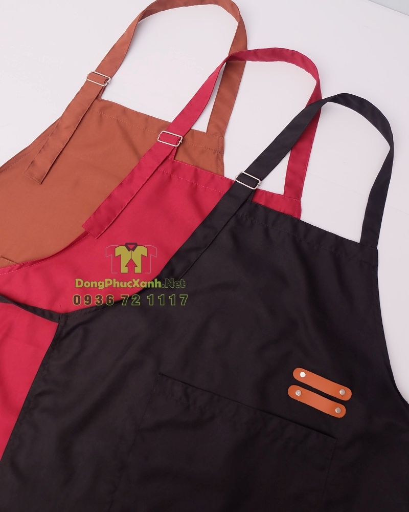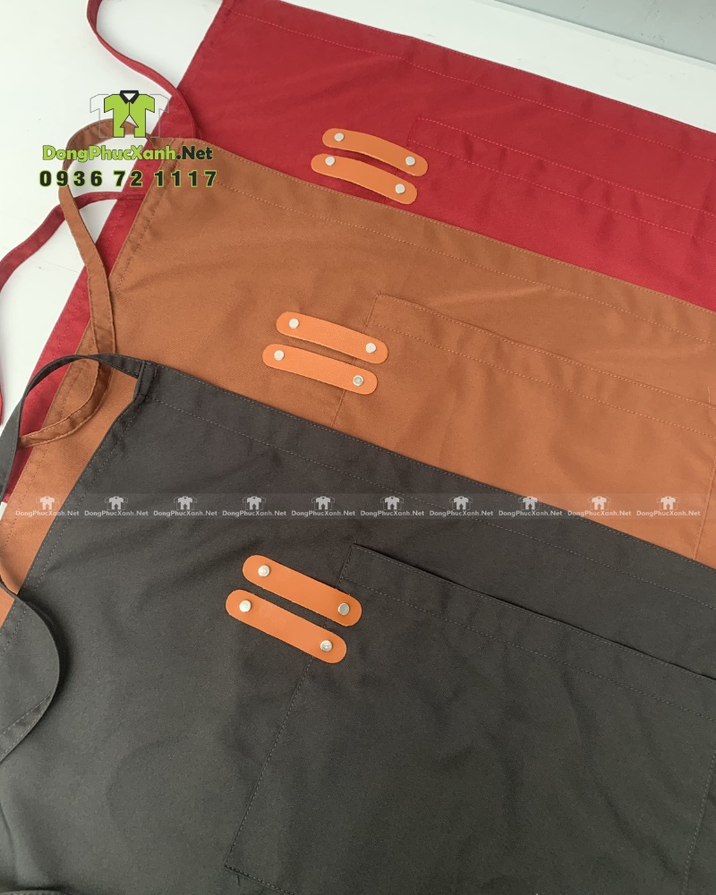 Điểm nổi bật của mẫu tạp dề này là thiết kế form dáng gọn gàng, dễ di chuyển, kết hợp túi trước tiện lợi giúp nhân viên đựng sổ, bút hoặc dụng cụ nhỏ trong quá trình phục vụ. Phần dây buộc chắc chắn, dễ điều chỉnh theo nhiều dáng người.