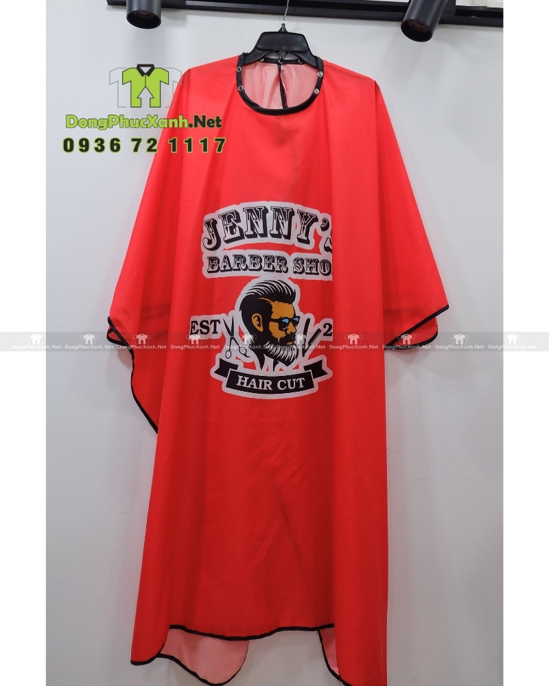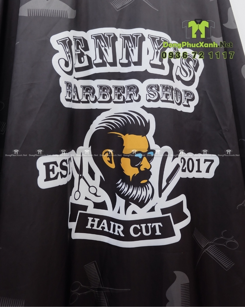 Áo choàng tóc in logo Jenny’s Barber Shop giúp bảo vệ quần áo khách hàng sạch sẽ, đồng thời nâng cao hình ảnh thương hiệu của tiệm. Đây là lựa chọn hoàn hảo cho các salon, barber muốn đồng bộ đồng phục và thể hiện sự chuyên nghiệp.
