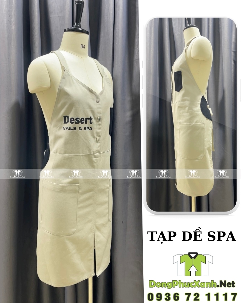 Tạp dề nails sẽ được thiết kế được tinh chỉnh để phù hợp với môi trường làm việc tại các Salon/Spa, đề cao tính thẩm mỹ và sự tiện dụng: