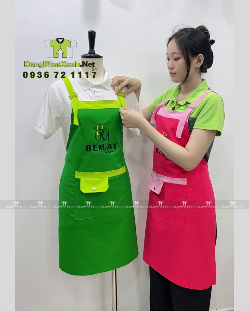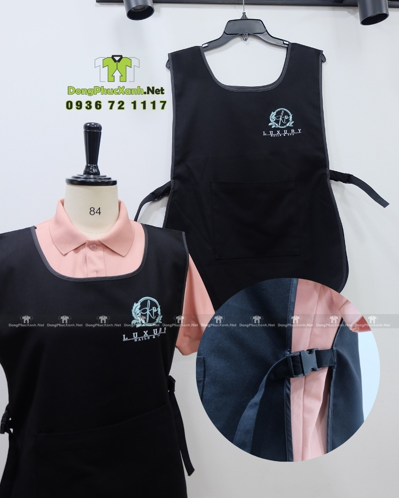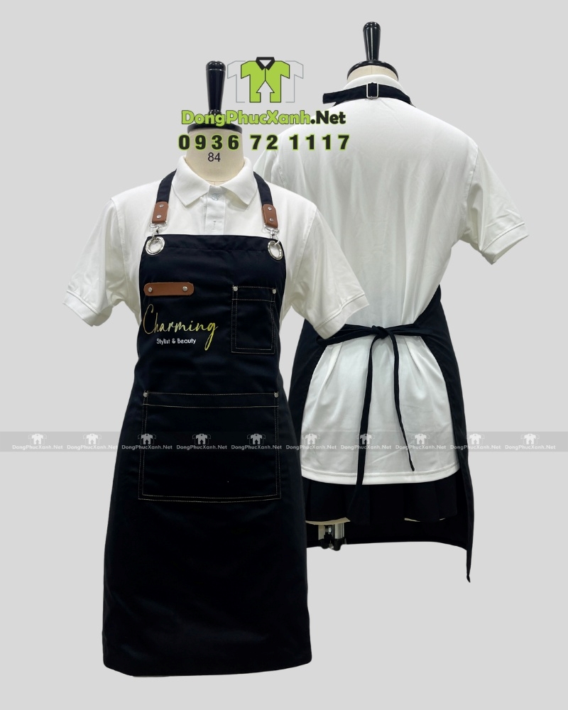 • Chuỗi Salon chuyên nghiệp/Cao cấp: Ưu tiên loại tạp dề có thêu logo thương hiệu sắc nét ở ngực. Sử dụng thiết kế dây chéo lưng để tạo diện mạo đồng bộ, đẳng cấp và giúp nhân viên giữ phong thái tự tin suốt ngày dài.
