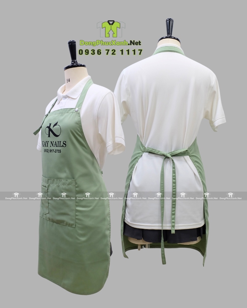 • Tạp dề nail màu rêu: trầm nhưng có điểm nhấn, thường được chọn cho các tiệm muốn khác biệt nhẹ nhưng vẫn dễ sử dụng.