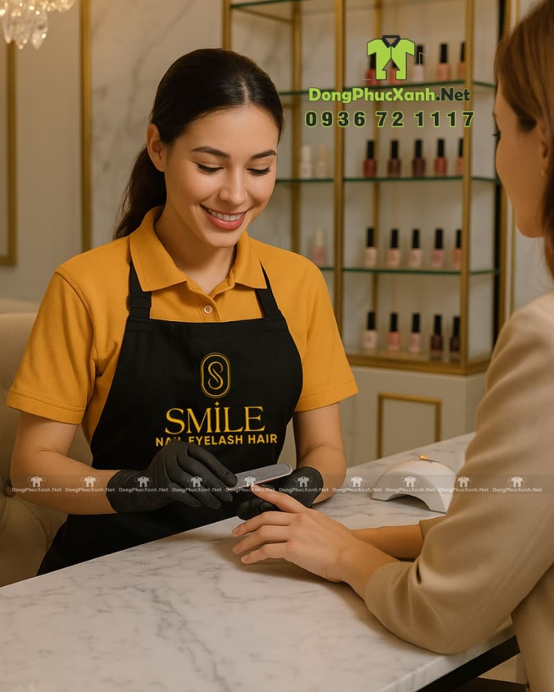 Chuỗi tiệm nail cao cấp nên lựa chọn các mẫu tạp dề nail in logo để tăng nhận diện thương hiệu