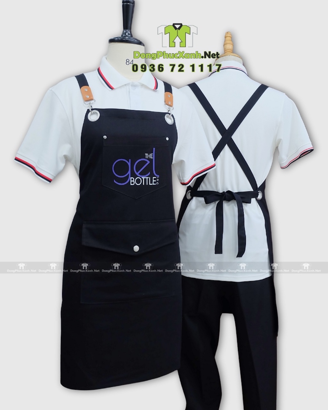 Tạp dề pha chế quán cà phê phổ biến nhất chính là tạp dề yếm với thiết kế ở trên giống với chiếc yếm, bao phủ ở phần ngực với dây đeo qua cổ, giúp quần áo được che chắn tốt. Mẫu tạp dề yếm của Đồng Phục Xanh được thiết kế kiểu dáng sang trọng, chất liệu kaki thoáng khí, tạo sự nhẹ nhàng cho nhân viên.